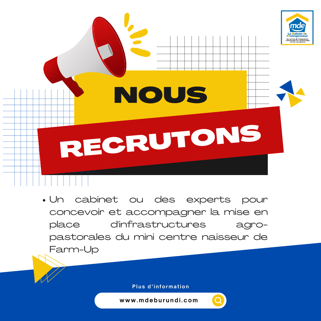 La Maison de l’Entrepreneur (MDE) lance un appel à candidatures pour le projet CALYD III.Dans le cadre de l'accompagnement de Farm-Up, un mini centre naisseur porté par de jeunes entrepreneurs, la MDE recherche un cabinet ou des experts capables de :• Concevoir et accompagner la mise en place d'infrastructures agro-pastorales adaptées.• Appuyer l’importation d’animaux reproducteurs […]